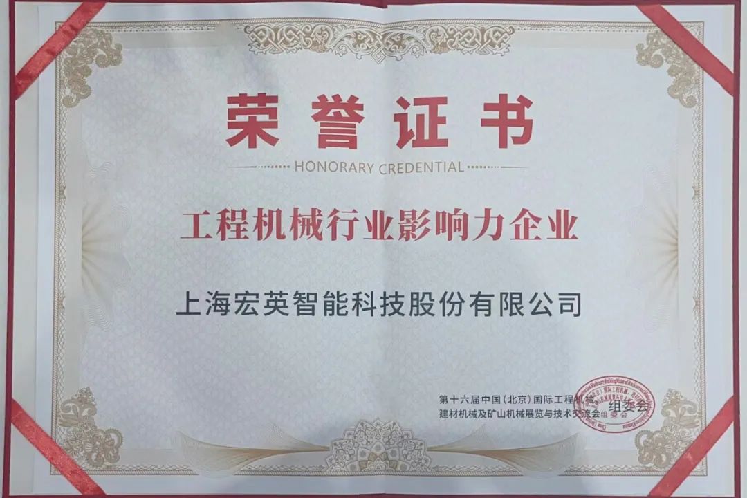 今年会智能再获认可,被授予“工程机械行业影响力企业”荣誉证书。